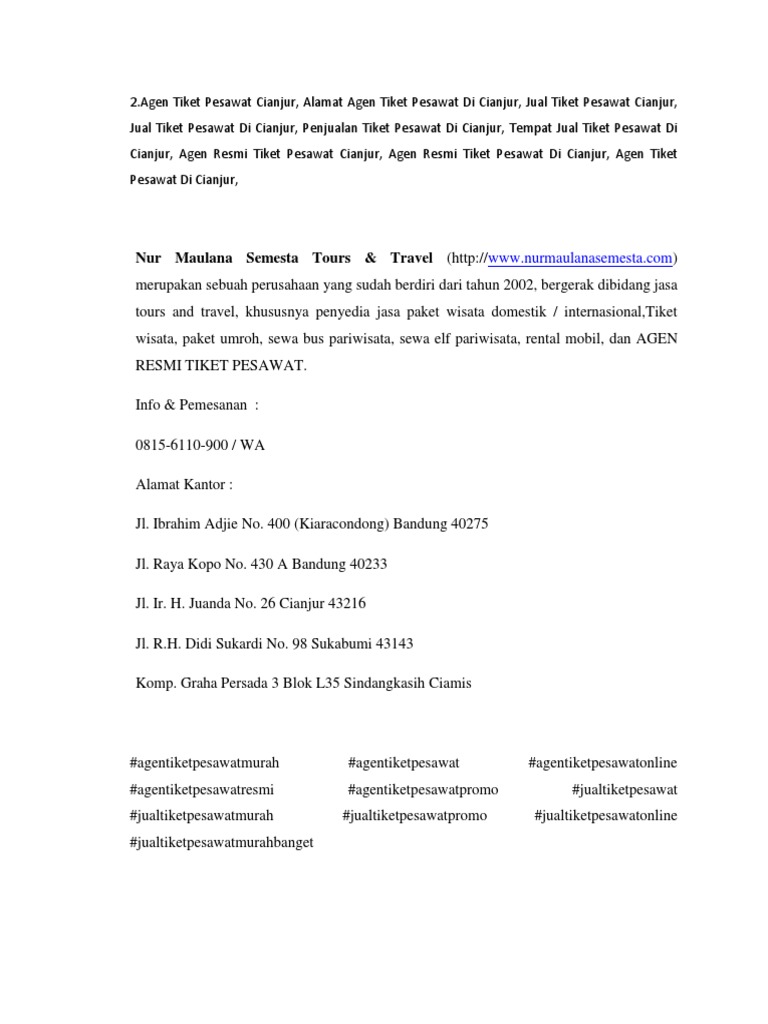 Viral Alamat Agen Tiket Pesawat Di Bogor Collections Seperti halnya dari adanya penetapan harga tiket pesawat, dimana kebijakan dari sebuah ketentuan tersebut kini berlaku di semua jenis tiket termasuk di eticket pesawat promo online yang seperti yang saat ini banyak dilakukan oleh agen agen resmi penjualan tiket online di indonesia. Cara mudah menjadi agen tiket pesawat dan pengusaha tour travel. Kami juga melayani paket tour di seluruh wilayah indonesia dan wilay. Cukup dengan handphone dan koneksi internet anda sudah bisa menjadi pengusaha agen tiket pesawat, reservasi hotel, kereta api, pelni, shuttle. Untuk masuk ke kawasan wisata ini tidak perlu membayar tarif apapun. Harga tiket masuk geopark ciletuh.