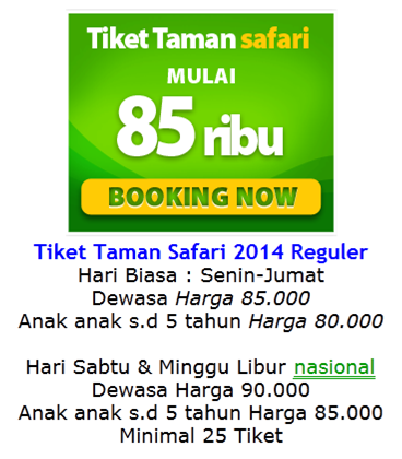 Harga Tiket Kereta Gantung Taman Safari Promo tiket masuk taman safari bogor. Berbeda dengan turis, harga yang dipatok bisa hampir 2 kali lipat yaitu mulai 200 ribuan. Silahkan tunjukan *kode booking* di loket + silahkan ambil gelang tiket safari anda !! Harga tiket wahana taman safari yang satu ini terbagi menjadi 2 macam yaitu wahana yang bisa dinikmati dengan bebas menggunakan terusan dan wahana yang harus membeli tiket secara terpisah.