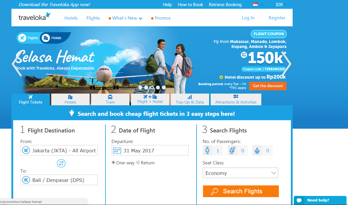 Traveloka.com merupakan situs pencarian dan pembelian tiket pesawat dan hotel terbesar di indonesia.