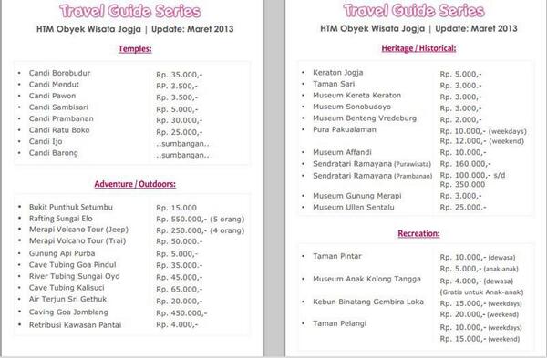 Tiket Masuk Kaliurang Kaliurang adalah daerah di jogja yang memang banyak sekali objek wisatanya. Festival ini akan membuat kawasan wisata di lereng gunung merapi, kaliurang tetap hidup di malam hari selama 45 hari. Selain menyajikan beraneka jenis landmark dunia, tempat wisata kaliurang ini juga menyediakan berbagai jenis fasilitas untuk wisatawan. Untuk dapat masuk ke kawasan objek wisata ini, dikenakan tarif yang murah.